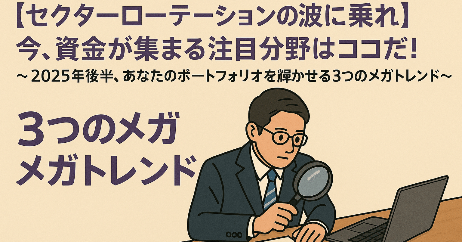 ご安心ください。この記事では、2025年5月現在の最新の市場環境を踏まえ、なぜセクターローテーションが起こるのかという基本から、今まさに資金が集まりつつある、あるいはこれから大きな注目を集めるであろう「3つのメガトレンド」、そして、その波に賢く乗るための投資戦略まで、プロの視点から徹底的に解説します。