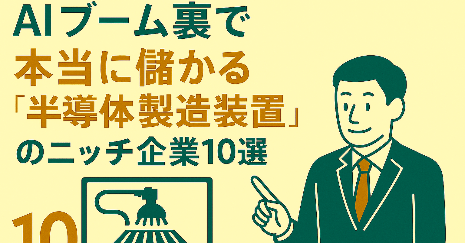 本日2025年6月13日(金曜日)の東京証券市場で注目される可能性のある銘柄をご紹介します。 世界的なAIブームを背景に、NVIDIAや大手半導体メーカーに注目が集まっていますが、その影で、彼らの高性能なAIチップ製造を支える日本の「半導体製造装置」関連企業が、静かに、しかし力強く成長しています。これらは、一般にはあまり知られていないニッチな分野で世界トップクラスのシェアと技術力を誇り、AIブームの真の受益者となる可能性を秘めています。 本日は、そのような「本当に儲かる」可能性を秘めた、半導体製造装置関連のニッチな実力派企業を10銘柄ご紹介いたします。