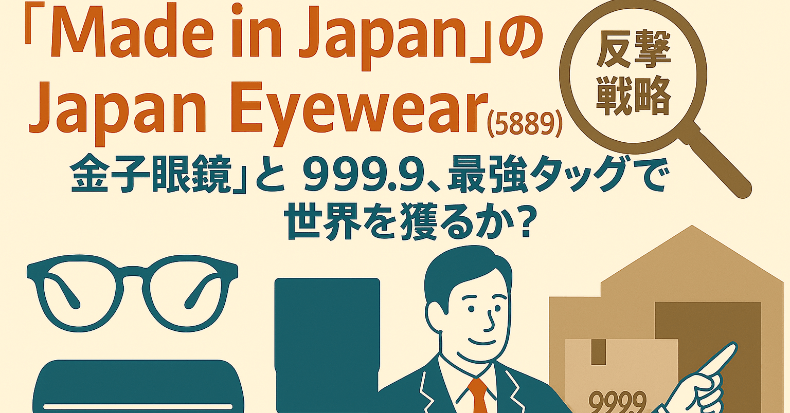 本日、私たちが徹底的にデュー・デリジェンス(DD)を行うのは、この高付加価値アイウェア市場において、日本の二大巨頭とも言えるブランドを傘下に収め、世界市場に「Made in Japan」の逆襲を仕掛ける、**Japan Eyewear Holdings株式会社(ジャパンアイウェアホールディングス、以下JEH、証券コード:5889)**です。