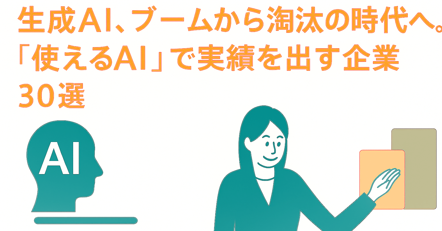 2025年6月20日(金曜日)の東京証券市場で注目される可能性のある銘柄をご紹介します。 世界を熱狂させた生成AIブームは、期待先行の「ブーム」から、実際にビジネスで成果を出す企業が選別される「淘汰」の時代へと移行しつつあります。市場の関心は、「AIをやっている」というストーリーから、「AIでいかに稼いでいるか」という具体的な実績へとシフトしています。 本日は、この大きな潮流の中で、「使えるAI」を武器に、業務効率化や新たな価値創造といった形で既に具体的な実績を出し始めている企業を30社、分野別に厳選してご紹介いたします。