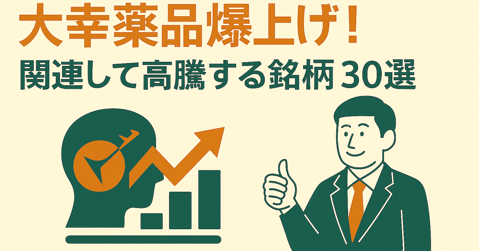 2025年6月23日(月曜日)の東京証券市場で注目される可能性のある銘柄をご紹介します。 大幸薬品(4574)の爆上げに連動し、同様に株価が高騰する可能性を秘めた関連銘柄を20社、分野別に厳選してご紹介いたします。