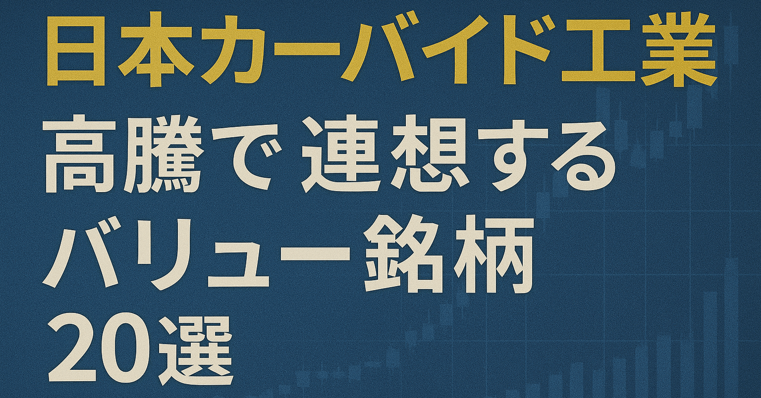 2025年6月23日(月曜日)の東京証券市場で注目される可能性のある銘柄をご紹介します。 先週来、再帰反射シートや機能性フィルムなどを手掛ける化学メーカー、日本カーバイド工業(4064 東証プライム)の株価が市場の大きな注目を集め、高騰しています。この動きは、市場の関心が、特定のニッチ分野で高い技術力を持ちながらも、PBR(株価純資産倍率)などの指標面で割安に放置されてきた「特殊化学・素材メーカー」に広く向かい始めたサインと捉えることができます。 本日は、この流れを受け、日本カーバイド工業と同様に独自の技術力を持ち、かつバリュエーション面に魅力のある関連のバリュー銘柄を20社、分野別に厳選してご紹介いたします。
