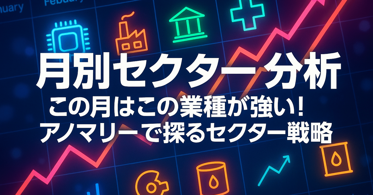 【月別セクター分析】この月はこの業種が強い!アノマリーで探るセクター戦略 2026 3/30 アノマリー分析 2025年6月29日2026年3月30日 アノマリー分析 よかったらシェアしてね! URLをコピーしました! URLをコピーしました! 【月末リバランスの衝撃】機関投資家のポートフォリオ調整が市場に与える影響 【AIはあなたのポートフォリオをどう変えるか?】5年後の勝者と敗者 この記事を書いた人 日本個別株デューデリジェンスセンター 関連記事 【指数組み入れ効果】日経平均、TOPIX採用決定で、株価は本当に上がるのか。裁定取引の動き 2025年8月16日 「アノマリー・カレンダー」を作成する。一年間の、注目すべき経験則を一覧に 2025年8月16日 夏の甲子園、優勝校の「地元企業」株は上がるか?ご祝儀相場のアノマリー 2025年8月16日 個人投資家こそ、アノマリーを武器にできる。機関投資家が手を出せない「ニッチな歪み」 2025年8月15日 あなたのアノマリーは、もう古い?AI時代に「消えたアノマリー」と「生き残ったアノマリー」 2025年8月15日 【恐怖は買い?】VIX指数(恐怖指数)を究める!プロが教える最強の逆張りシグナルと投資戦略 2025年6月21日 【配当投資の罠】配当落ち日に株価は配当以上に下がるのか?理論と現実をプロが徹底解剖 2025年6月21日 【2025年夏・ボーナス投資】個人マネーは日本株を押し上げるか?データで読み解く資金流入の真実と最適戦略 2025年6月21日 コメント コメントする コメントをキャンセルコメント ※ 名前 ※ メール ※ サイト 次回のコメントで使用するためブラウザーに自分の名前、メールアドレス、サイトを保存する。