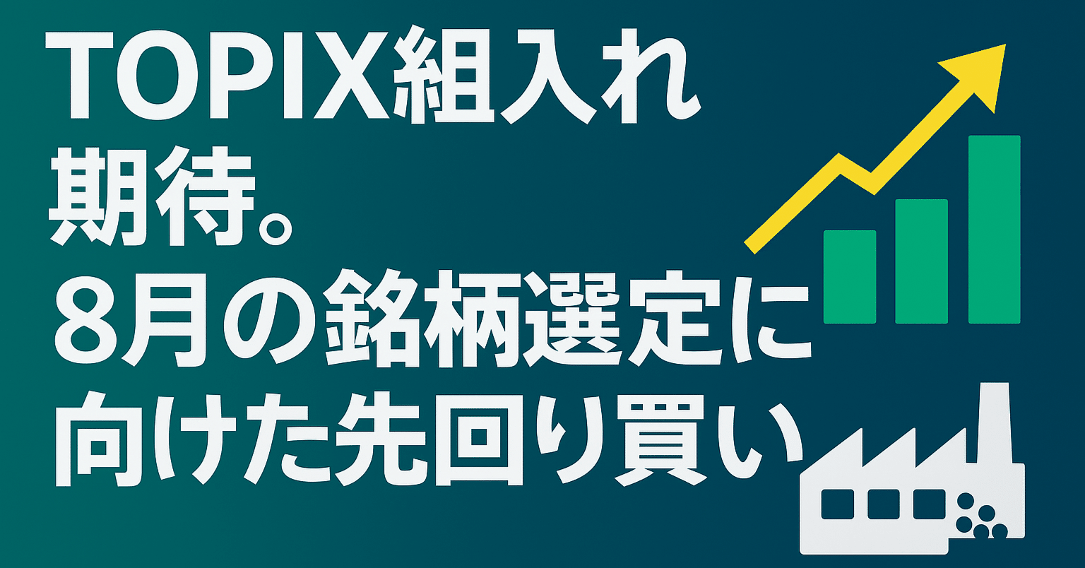 免責事項: 本情報は、現時点(2025年7月12日 午前9時30分現在)における市場の想定や企業情報に基づいた推奨であり、将来の株価上昇を保証するものではありません。株式投資はリスクを伴い、投資の最終決定はご自身の判断と責任において行ってください。TOPIXへの新規採用は、日本取引所グループの判断に基づき決定されるため、本稿で取り上げた銘柄が必ず採用されることを保証するものではありません。採用が見送られた場合、期待感が剥落し、株価が急落するリスクがあります。