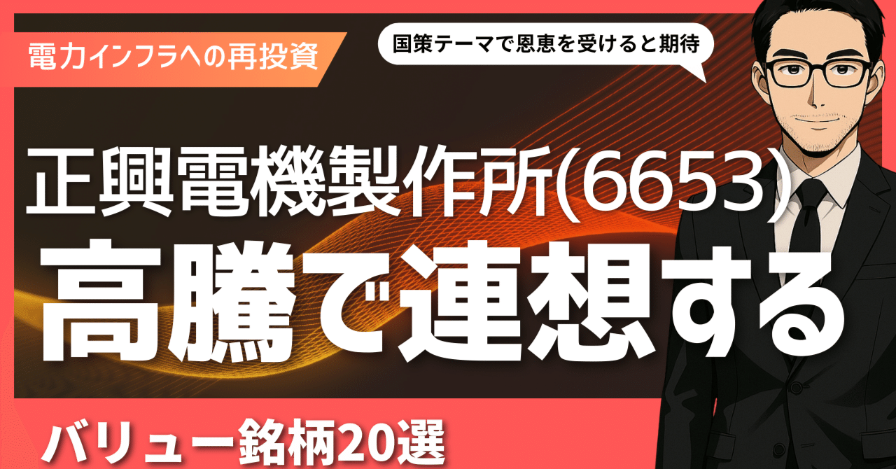2025年7月15日(火曜日)の東京証券市場で注目される可能性のある銘柄をご紹介します。 昨日来、電力会社向けの配電・制御システムなどを手掛ける株式会社正興電機製作所(6653 東証プライム)の株価が市場の大きな注目を集め、高騰しています。この動きは、AIデータセンターの急増による電力需要の拡大や、再生可能エネルギー導入に伴う送電網の増強、そしてインフラ老朽化対策といった、日本の「電力インフラ」への再投資が本格化するとの期待が高まっていることの表れと考えられます。 本日は、この流れを受け、正興電機製作所と同様に電力インフラの維持・更新・強化という国策テーマで恩恵を受けると期待されながらも、株価がまだ割安な水準にある関連のバリュー銘柄に連想買いが向かう可能性を考え、注目すべき20社を分野別に厳選してご紹介いたします。