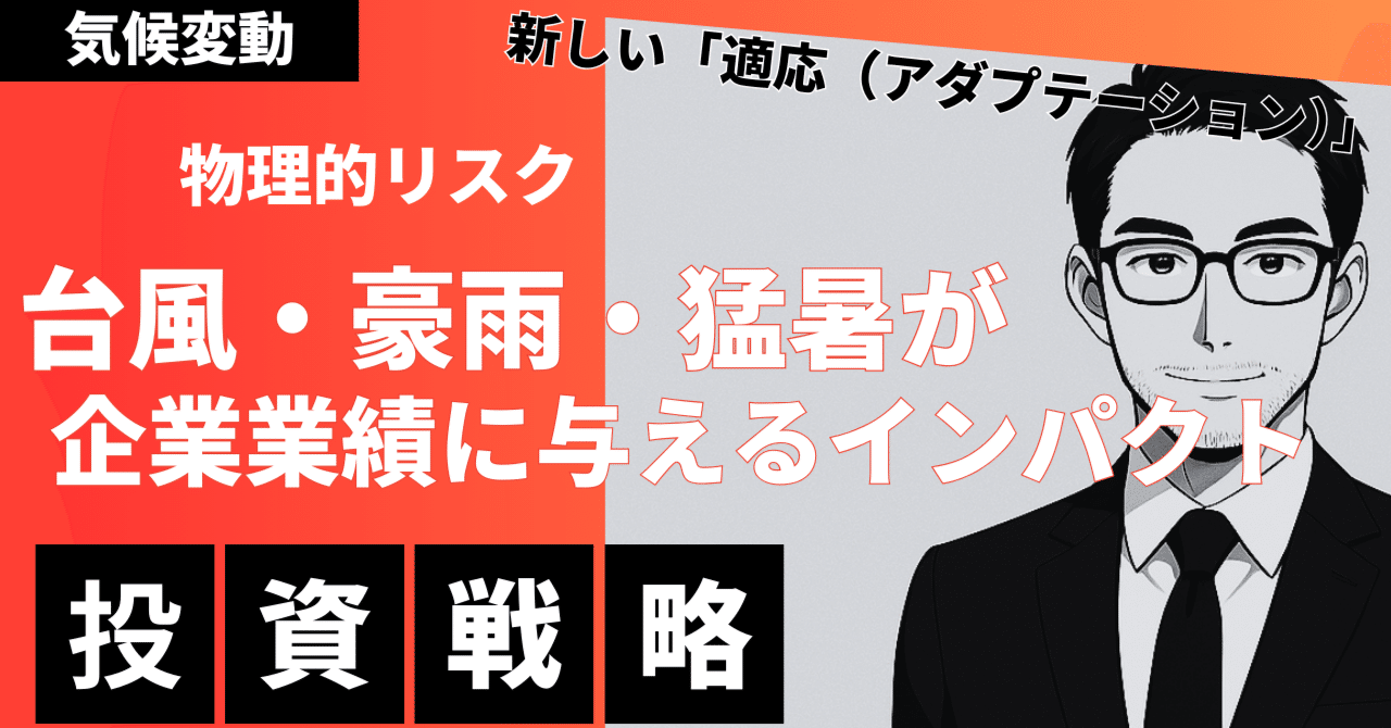 本記事は、この、多くの投資家が見過ごしている、あるいは、見て見ぬふりをしている「気候変動の物理的リスク」という、巨大なテーマに、投資家の視点から、真正面から、向き合う試みです。 台風、豪雨、猛暑といった、具体的な気象災害が、いかにして、企業の収益を、そして、株価を、破壊するのか。その、恐ろしいメカニズムを、徹底的に解剖します。 しかし、本稿の目的は、単に、リスクを煽ることではありません。その、巨大なリスクの裏側で、必然的に生まれる、新しい「適応(アダプテーション)」ビジネスの、巨大な投資機会を、あぶり出すことです。