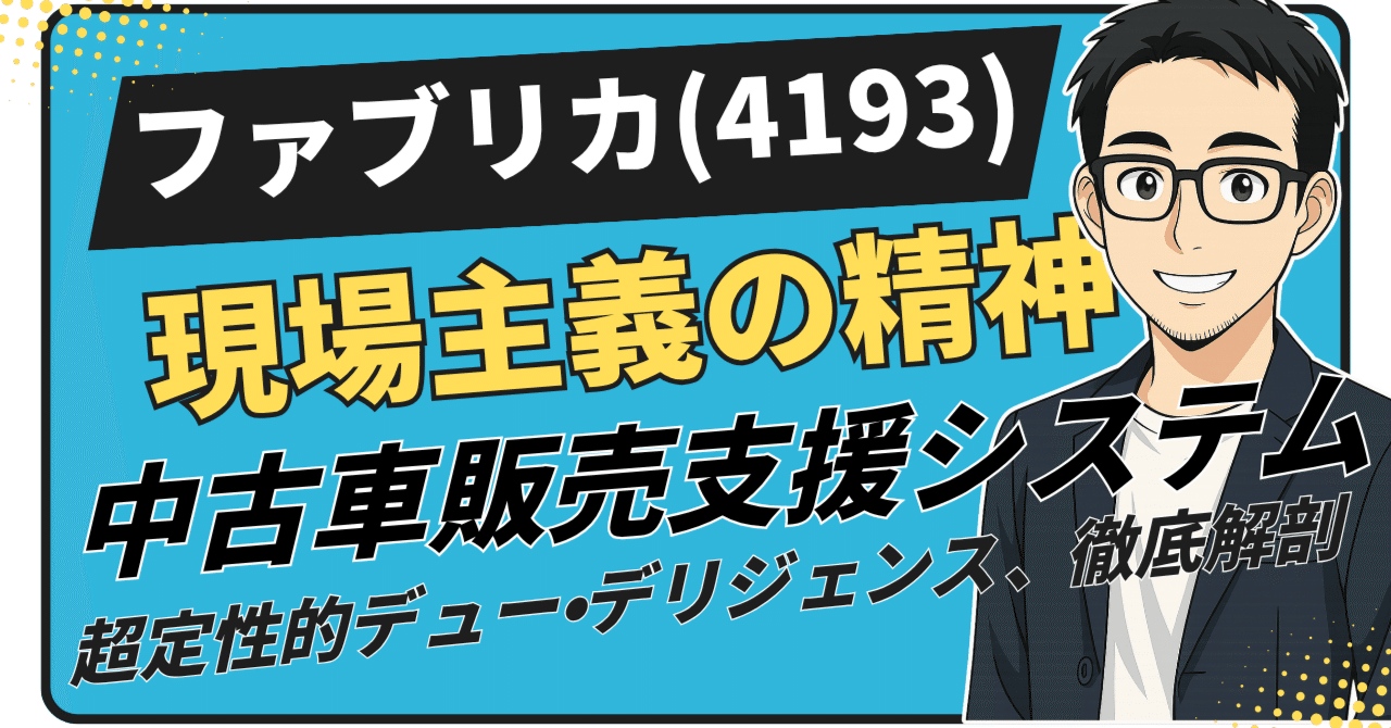 中古車業界という、ともすれば泥臭いアナログなイメージを持つ巨大市場。その裏側で、デジタルの力を用いて静かに、しかし着実に革命を進める企業がある。それが今回取り上げる**ファブリカホールディングス(4193)**だ。