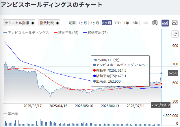 ◎ 注目理由: アンビスをはじめとする医療・介護事業者の成長は、優秀な人材の確保が絶対条件です。エス・エム・エスは、この業界の「人材」という最も重要な経営資源を供給するプラットフォーマーとして、圧倒的な存在感を誇ります。高齢化に伴い医療・介護サービスの需要が増えれば増えるほど、同社への人材紹介ニーズも高まるという構造です。景気変動の影響を受けにくく、安定的な成長が期待できるビジネスモデルと言えます。