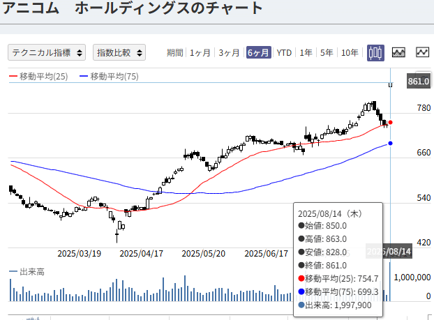 アニコム ホールディングス (8715) 今日の株価、予想(AI株価診断など)、チャート推移、ニュース、その他にも今後の見