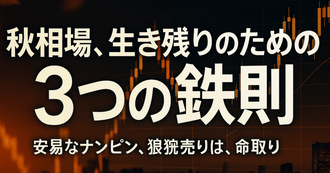 これから始まる2025年の秋相場。これをどう乗りこなし、年末のラリーへと繋げていくか。本記事では、私が長年の経験と分析から導き出した**「3つの鉄則」**を、具体的な市場データとシナリオを交えながら、余すところなくお伝えしたいと思います。安易なナンピン買い下がりや、恐怖に駆られた狼狽売りといった、多くの投資家が陥りがちな罠を避け、冷静沈着に市場と対峙するための羅針盤となれば幸いです。