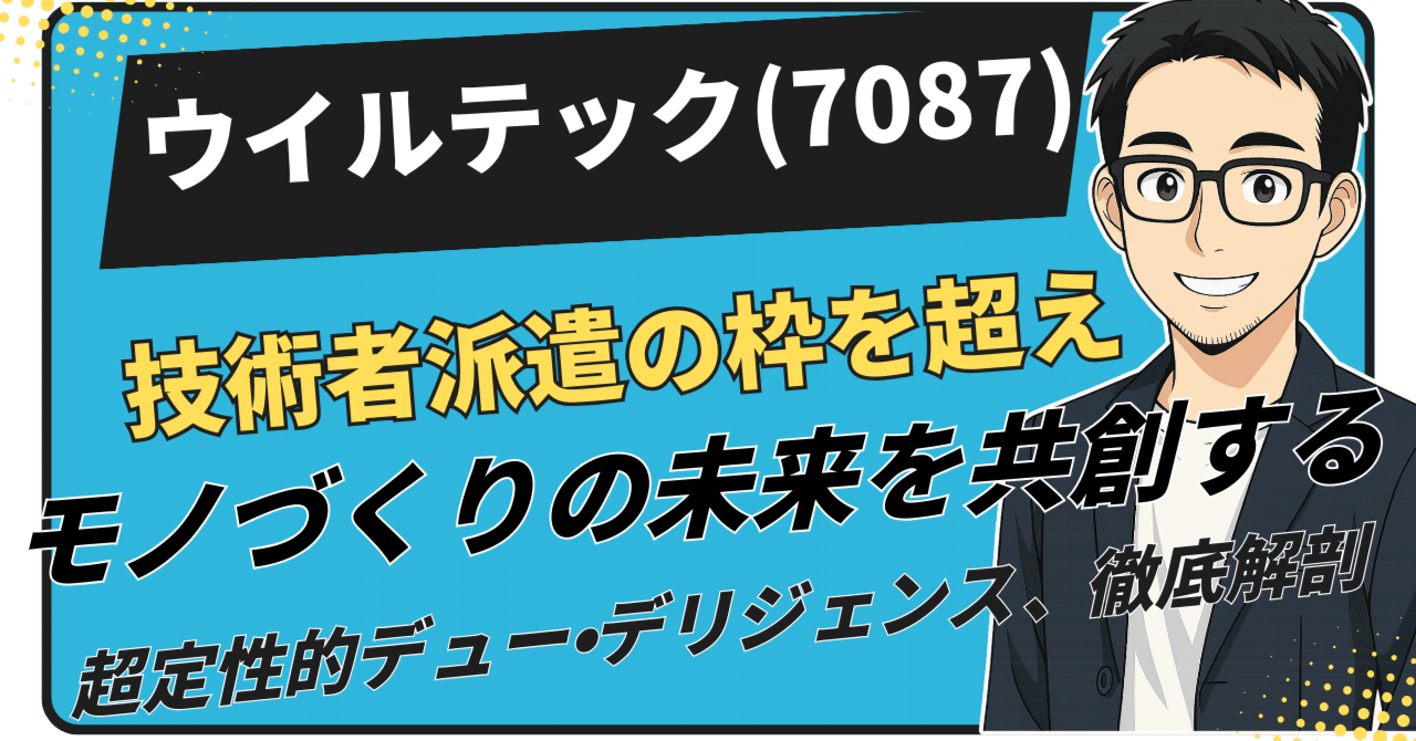 国内の製造業が、労働人口の減少、技術継承の断絶、そしてデジタル化の波という構造的な課題に直面する中、単なる人材供給に留まらないソリューションパートナーの存在価値が飛躍的に高まっています。今回、デュー・デリジェンスの対象として選定した株式会社ウイルテック(東証スタンダード:7087)は、まさにこの変革期の製造業にとって不可欠な存在となりつつある企業です。