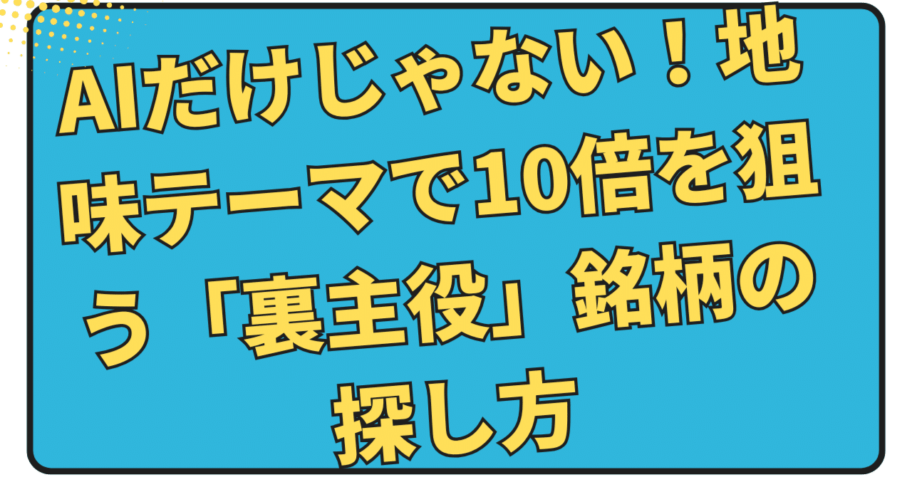AIの影に隠れた「構造的成長テーマ」にこそ、10倍株(テンバガー)の種は眠っています。