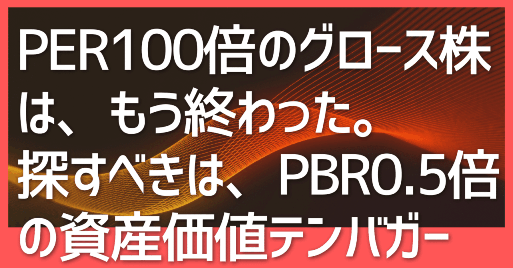 PER100倍のグロース株は、もう終わった。今、探すべきは、PBR0.5倍の「資産価値テンバガー」