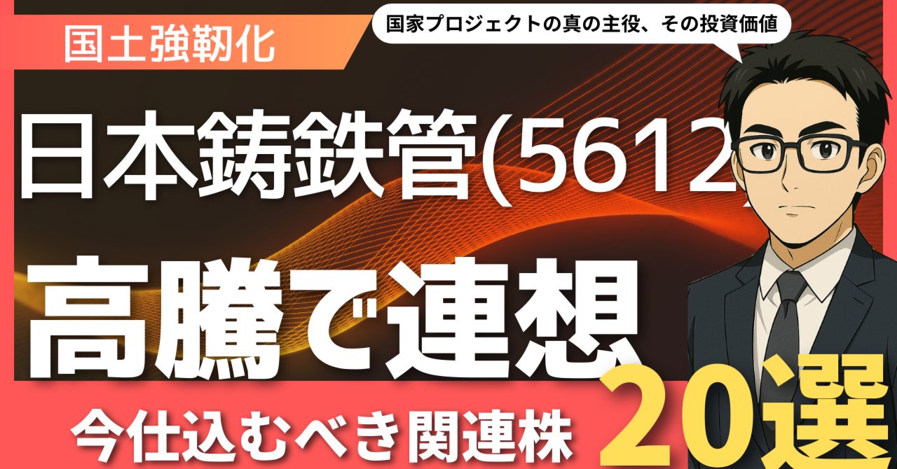 2025年、東京証券市場で静かな、しかし確実な胎動を見せているテーマがあります。それは、日本の社会が避けては通れない課題、「インフラの老朽化」と、それに対する国家的な取り組み「国土強靭化」です。その象徴ともいえる出来事が、東証スタンダード市場に上場する日本鋳鉄管 (5612) の株価急騰でした。同社は上下水道に使われるダクタイル鋳鉄管の専業メーカーであり、その株価上昇は、市場がこの国家的課題解決への期待を本格的に織り込み始めたサインと捉えることができます。