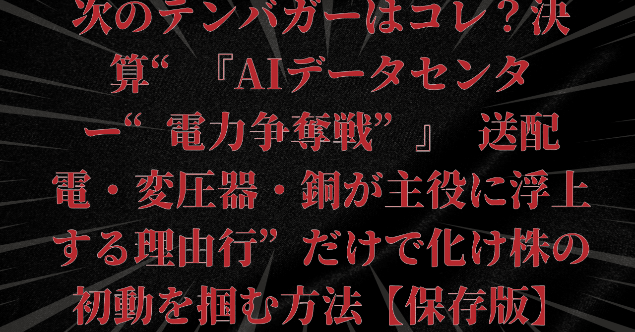 ボトルネックへの投資: 特に「変圧器」の需給逼迫は深刻で、リードタイムは数年に及び、関連企業の収益性を構造的に押し上げる。