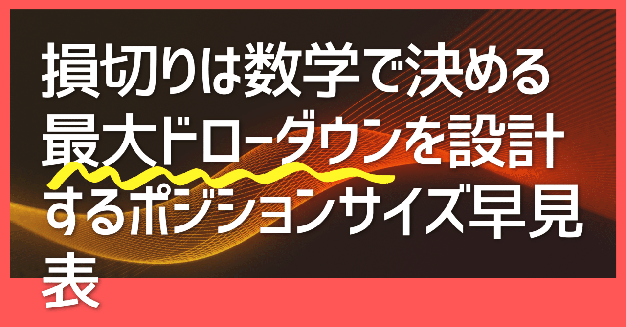 最大ドローダウン(MDD)を事前に設計する。 1回あたりの損失をコントロールすることで、最悪の事態、つまり連続で損失を被った際の資産の目減り幅を、精神的に耐えうる範囲に限定します。