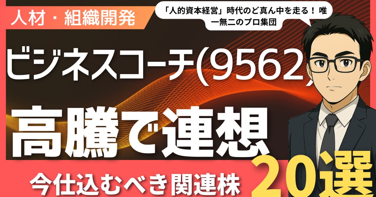 ビジネスコーチ(9562)高騰の次は?人材・組織開発で注目の隠れた成長株20選