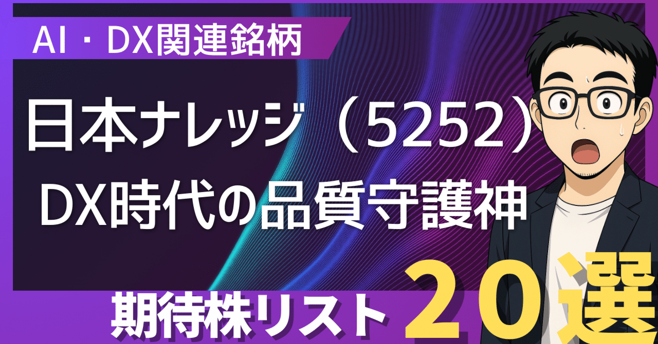 近年の株式市場において、テクノロジー関連銘柄は常に注目を集めています。特に、人工知能(AI)とデジタルトランスフォーメーション(DX)は、企業の生産性向上と新たなビジネス創出の鍵を握るテーマとして、投資家の関心を惹きつけてやみません。5252 日本ナレッジの急騰は、まさにこのトレンドを象徴する出来事です。同社は金融機関向けシステム開発やAIを活用した事業展開で知られ、市場の期待を一身に集めています。しかし、単一の銘柄に集中投資することは大きなリスクを伴います。そこで今回は、日本ナレッジの急騰から連想される、今後さらなる成長が期待されるAI関連銘柄とDX推進銘柄を厳選し、その魅力を徹底解説します。