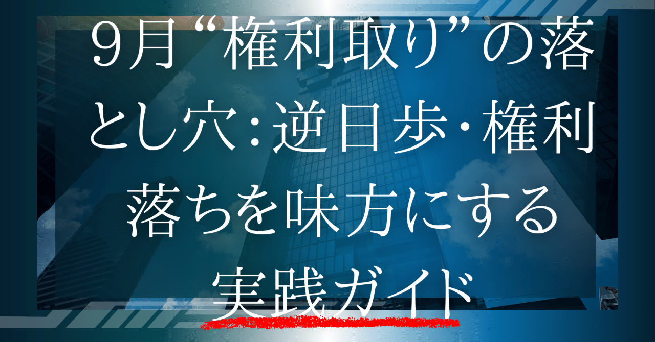 この記事を読み終える頃には、あなたは9月の権利取り相場を、単なるイベントとしてではなく、リスクとチャンスが渦巻く絶好の戦場として捉え、より冷静かつ戦略的に立ち回るための知見を得ているはずです。
