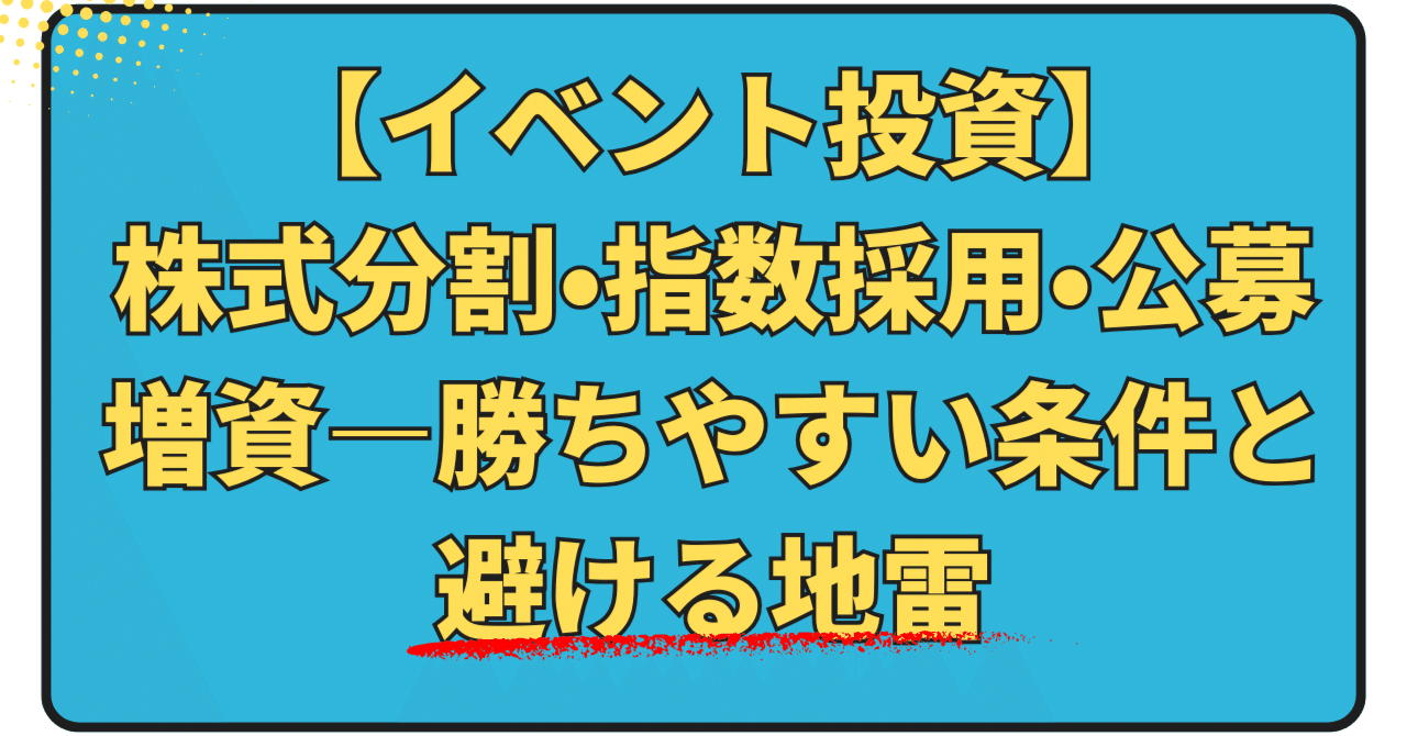 【イベント投資】株式分割・指数採用・公募増資—勝ちやすい条件と避ける地雷