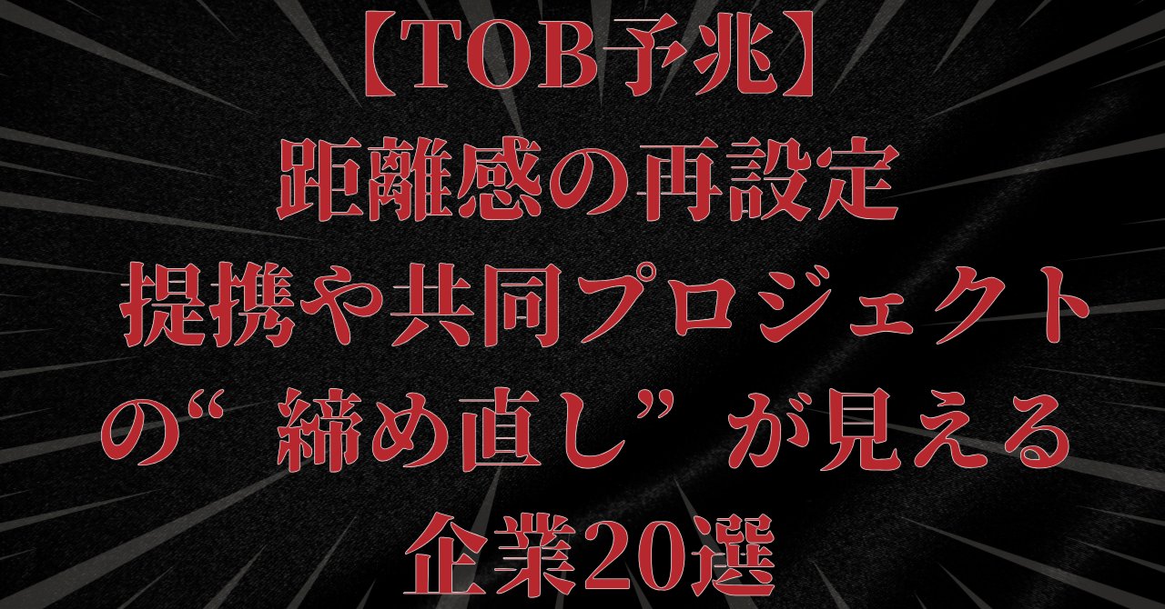 【TOBの足音】提携関係の再構築はM&Aの前触れか?距離感の変化に注目すべき20銘柄