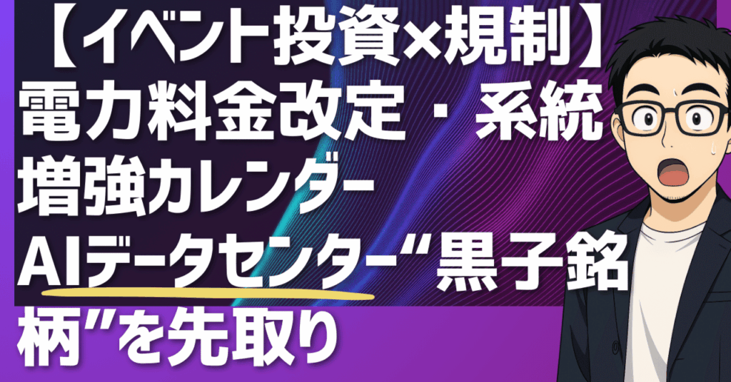 【イベント投資×規制】電力料金改定・系統増強カレンダー——AIデータセンター“黒子銘柄”を先取り