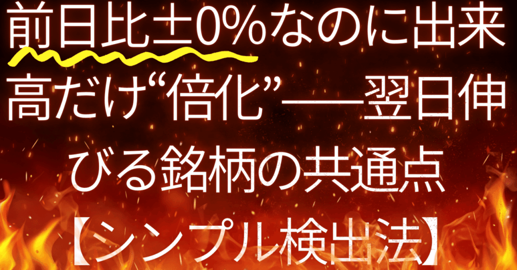 前日比±0%なのに出来高だけ“倍化”——翌日伸びる銘柄の共通点【シンプル検出法】