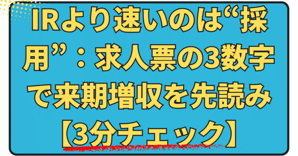 IRより速いのは“採用”:求人票の3数字で来期増収を先読み【3分チェック】
