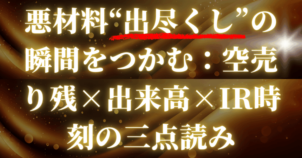 悪材料“出尽くし”の瞬間をつかむ:空売り残×出来高×IR時刻の三点読み【実践テンプレ付き】