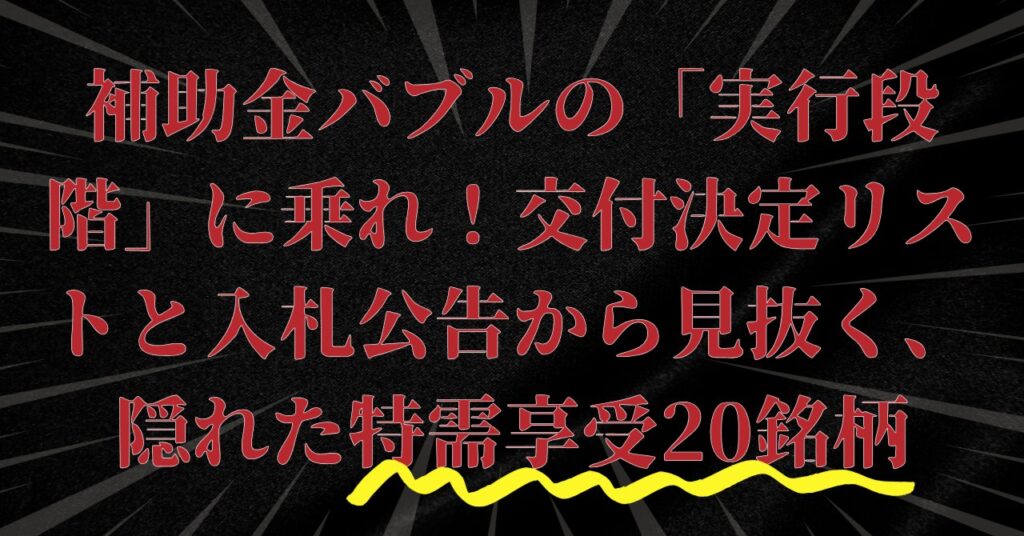 補助金バブルの「実行段階」に乗れ!交付決定リストと入札公告から見抜く、隠れた特需享受20銘柄