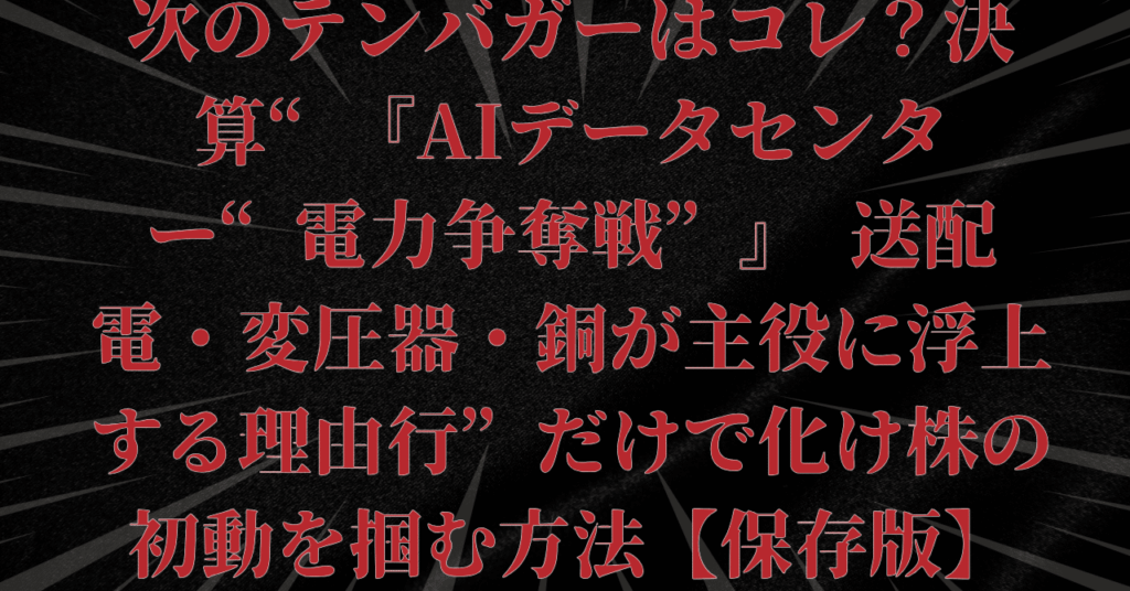 『AIデータセンター“電力争奪戦”』—送配電・変圧器・銅が主役に浮上する理由