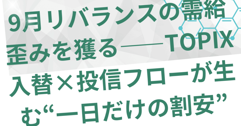 9月リバランスの需給歪みを獲る——TOPIX入替×投信フローが生む“一日だけの割安”