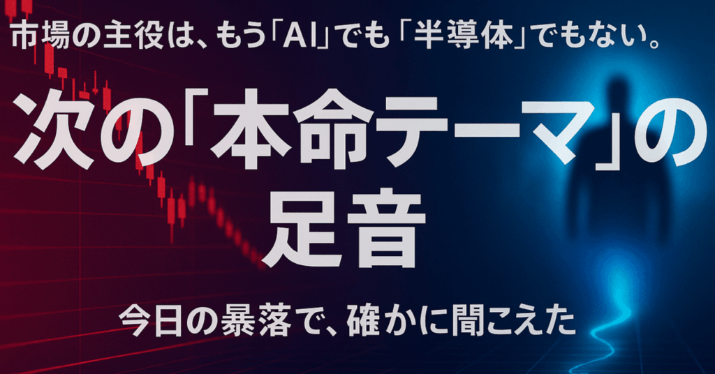 市場の主役は、もう「AI」でも「半導体」でもない。今日の暴落で、次の「本命テーマ」の足音が、確かに聞こえた