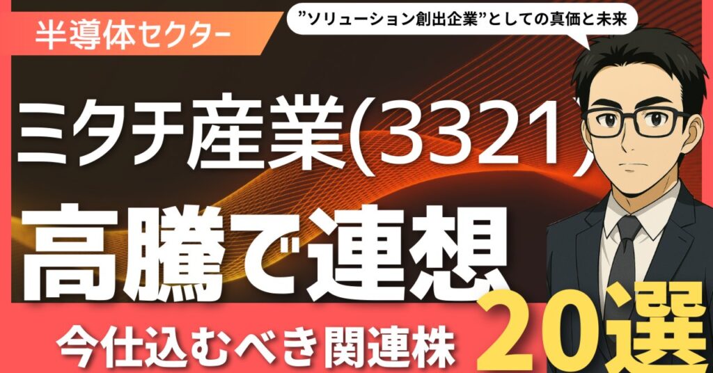 はじめに:ミタチ産業を再定義するミタチ産業(東証スタンダード:3321)。多くの投資家にとって、その名は「半導体・電子部品を取り扱う専門商社」として認識されているかもしれない。しかし、その実態は、単に部品を右から左へ流すだけの旧来型商社とは... -