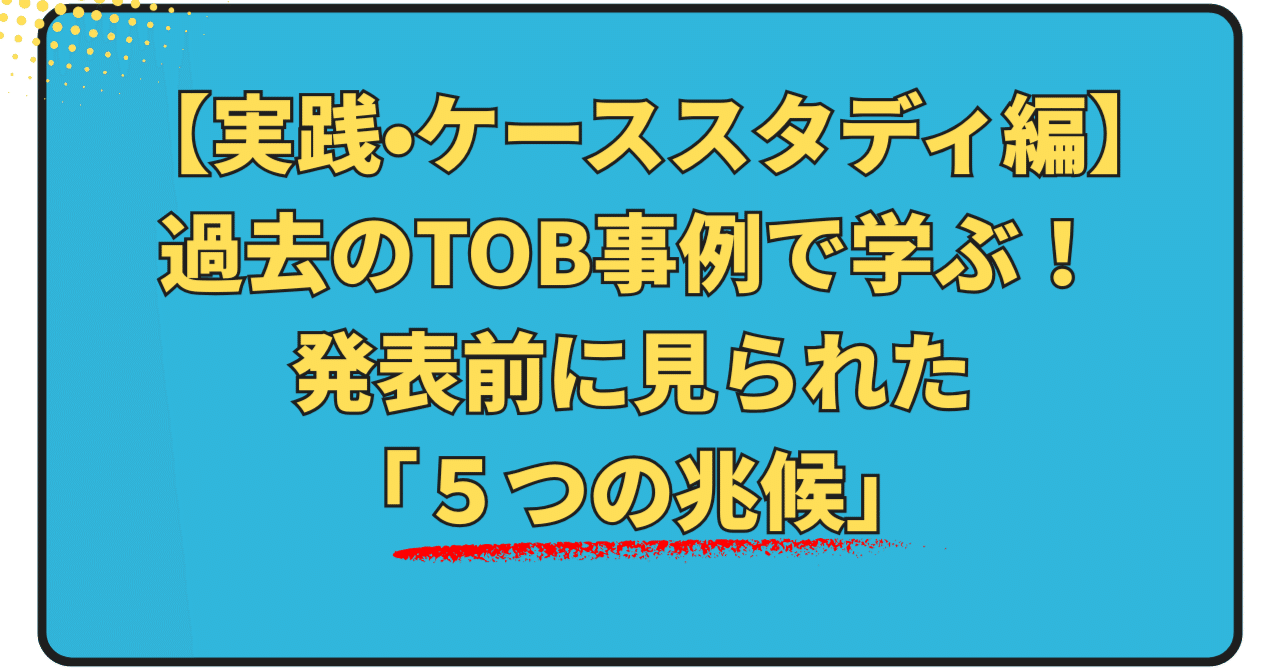 理論だけでは実践に役立ちません。ここでは、過去に実際に起こったTOB事例を紐解きながら、発表前にどのような「兆候」が見られたのかを具体的に検証していきます。
