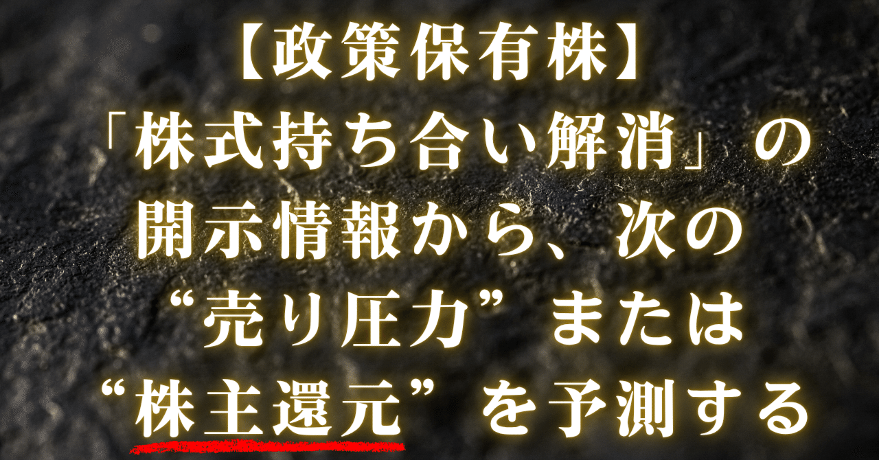 日本株市場で今、最も静かで、しかし最も地殻変動的な変化が起きているテーマは何か。私は迷わず「政策保有株の解消」を挙げます。これは単なる需給イベントではありません。長年日本企業の資本効率を蝕んできた「株式持ち合い」という構造的な問題に、遂にメスが入ったことを意味します。この流れは、一部の銘柄に短期的な売り圧力をもたらす一方、賢明な企業にとっては大規模な株主還元や成長投資の原資となり、株価を劇的に押し上げる可能性を秘めています。