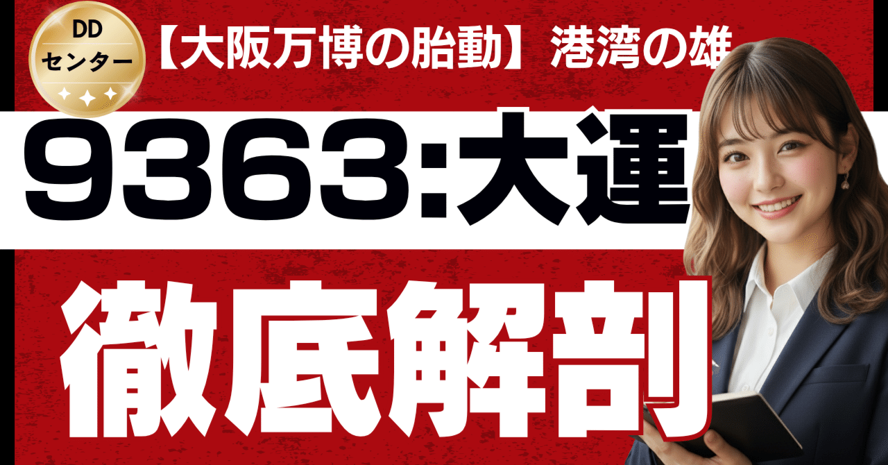 個人投資家の皆様、こんにちは。数多ある上場企業の中から、将来の輝きを放つ可能性を秘めた一社を深掘りする時間です。今回、私たちがデュー・デリジェンスの対象として選定したのは、大阪港を拠点とする老舗の港湾運送企業、株式会社大運(だいうん、証券コード:9363)です。
