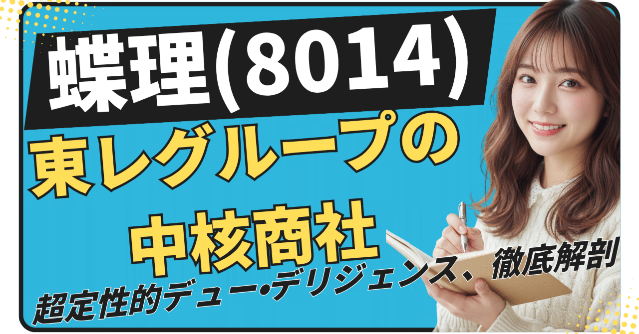 本記事では、東証プライム市場に上場する専門商社、蝶理株式会社(証券コード:8014)について、投資判断に資する詳細なデュー・デリジェンス(DD)を行います。