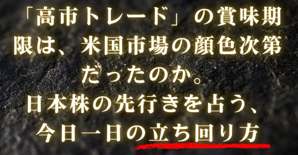 「高市トレード」の賞味期限は、米国市場の顔色次第だったのか。日本株の先行きを占う、今日一日の立ち回り方