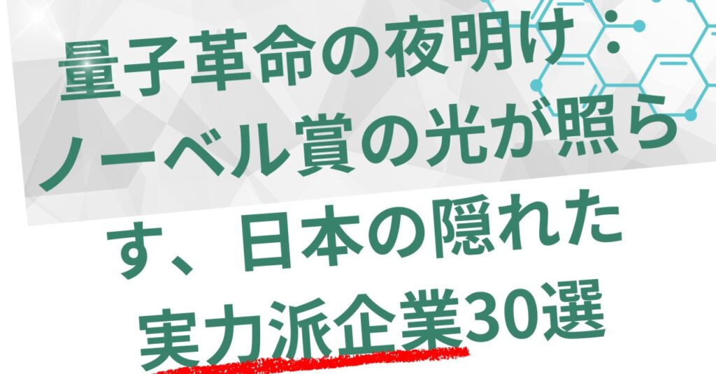 量子革命の夜明け:ノーベル賞の光が照らす、日本の隠れた実力派企業30選