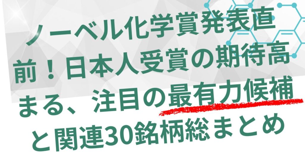 ノーベル化学賞発表直前!日本人受賞の期待高まる、注目の最有力候補と関連30銘柄総まとめ