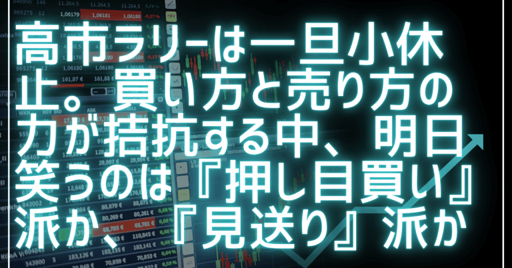 高市ラリーは一旦小休止。買い方と売り方の力が拮抗する中、明日笑うのは『押し目買い』派か、『見送り』派か