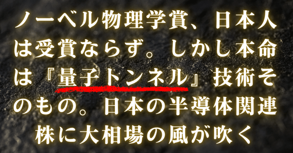 ノーベル物理学賞、日本人は受賞ならず。しかし本命は『量子トンネル』技術そのもの。日本の半導体関連株に大相場の風が吹く