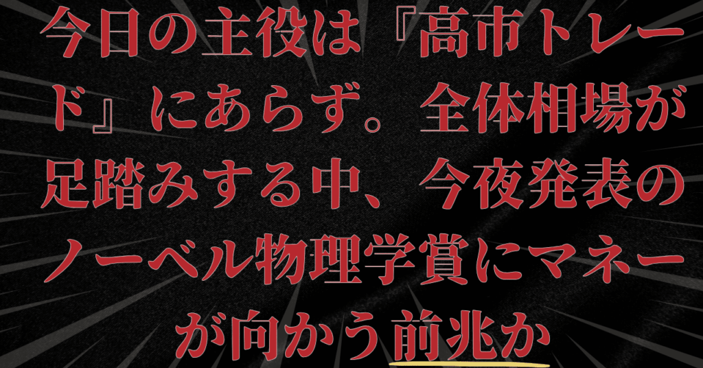 今日の主役は『高市トレード』にあらず。全体相場が足踏みする中、今夜発表のノーベル物理学賞にマネーが向かう前兆か