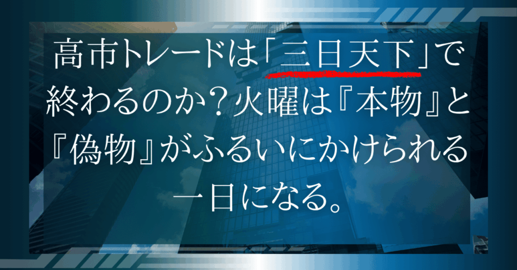 高市トレードは「三日天下」で終わるのか?火曜は『本物』と『偽物』がふるいにかけられる一日になる