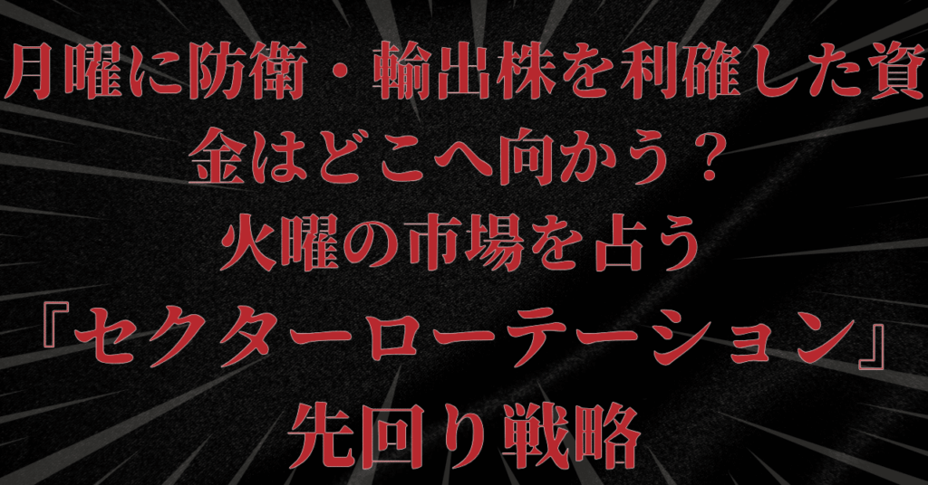 月曜に防衛・輸出株を利確した資金はどこへ向かう?火曜の市場を占う『セクターローテーション』先回り戦略