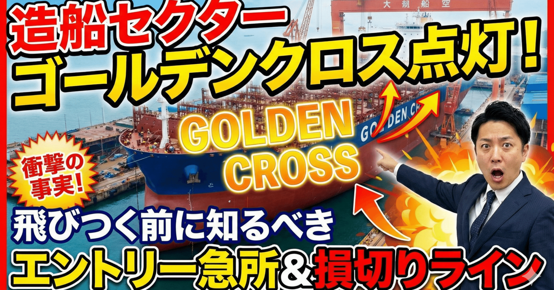 今日は、現在造船セクターの一部で発生しているテクニカルサイン「ゴールデンクロス」について、教科書的な解説ではなく、私が現場で学んだ「実戦での扱い方」をお話しします。