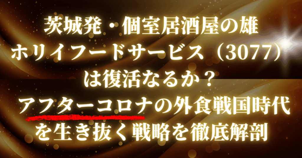 茨城発・個室居酒屋の雄「ホリイフードサービス(3077)」は復活なるか? アフターコロナの外食戦国時代を生き抜く戦略を徹底解剖