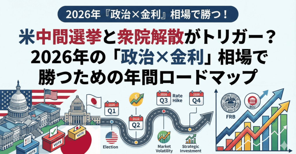 米中間選挙と衆院解散がトリガー?2026年の「政治×金利」相場で勝つための年間ロードマップ政治ニュースの騒音を消し、金利という羅針盤だけで資産を守り抜くための実践的ガイド投資家のみなさん、こんにちは。2026年という年を前にして、少し身構えていま... -