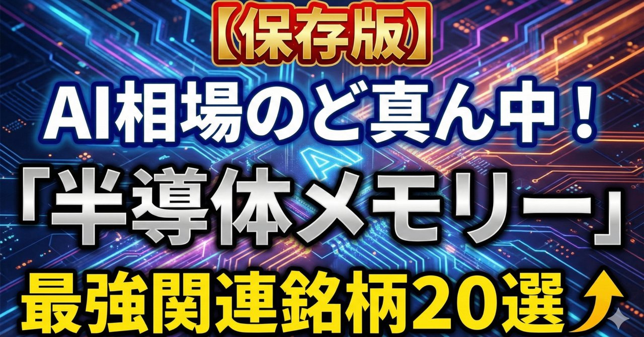 本記事では、単なる「半導体関連」という広い括りではなく、AI相場の本丸である「メモリー」と、特に技術的難易度の高い「後工程(パッケージング)」「微細化材料」にフォーカスを絞り、今後数年にわたってポートフォリオの核となり得る厳選20銘柄を紹介します。誰もが知る大型株だけでなく、ニッチな分野で世界を牛耳る隠れた実力企業も発掘しました。